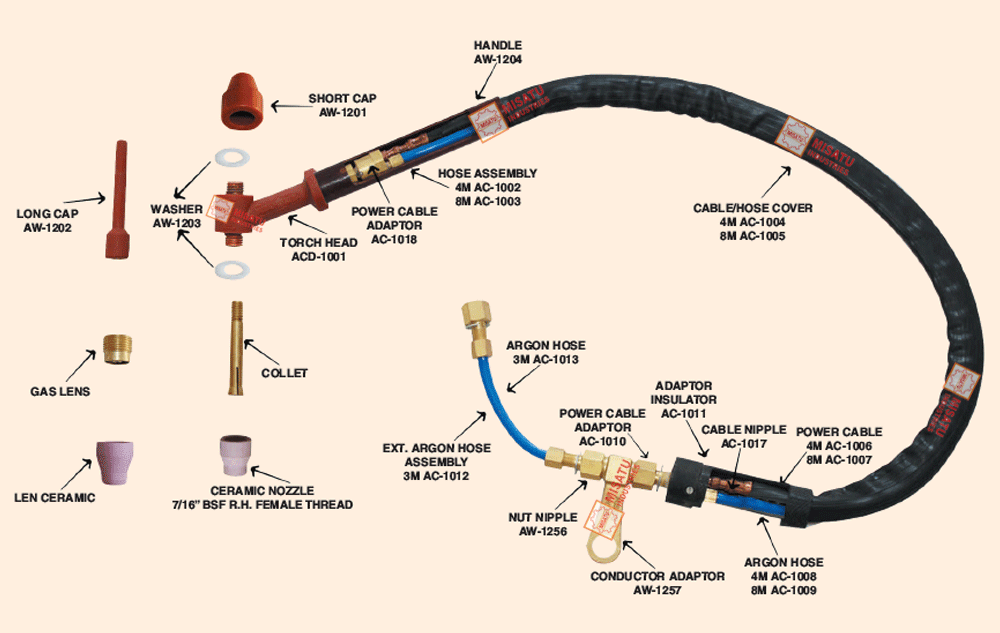 Torch Head AC-1001 Long Cap AW-1202 AW-1231-1PC. AW-1262-1PC. AW-1222-1PC.